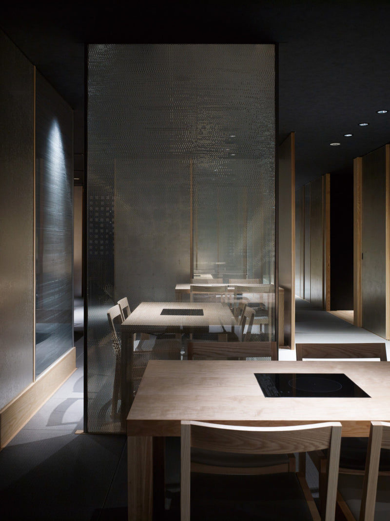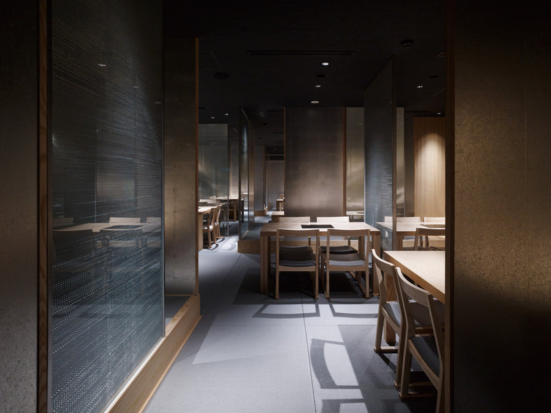 Hyoto, a Japanese restaurant located in Yamabushi-yama, Nakagyo Ward, Kyoto, is a space where the elegant silhouette of the chair A-7 is beautifully showcased.The chair’s legs are fitted with tatami-suri, specially developed to prevent damage to tatami mats.Tables designed for shabu-shabu feature seamlessly integrated IH cooktops, creating a clean, refined atmosphere for adults.The material used is white ash.
