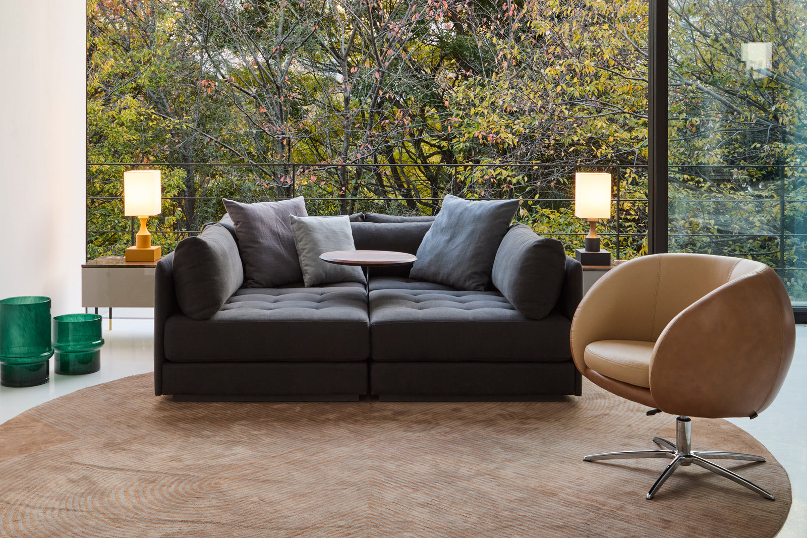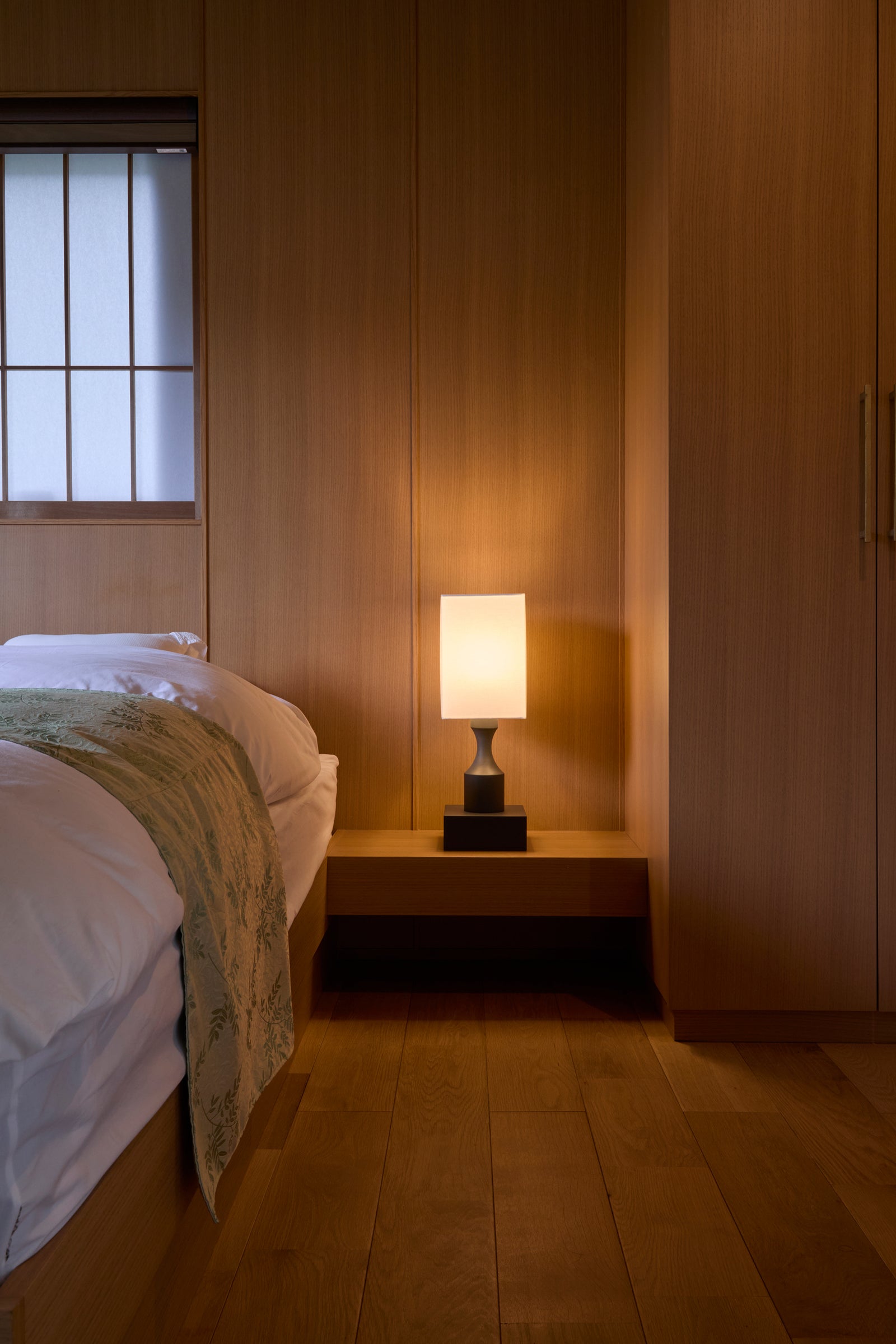 Un lampadaire sur pied au design élégant, composé de lignes droites et courbes. Disponible en quatre couleurs, il s'intègre aussi bien dans un style japonais qu'occidental.